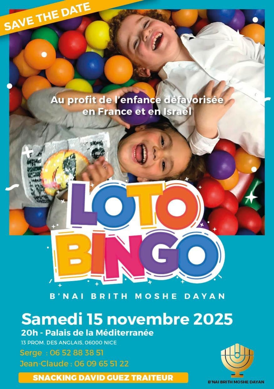 BILLETTERIE : https://www.helloasso.com/associations/b-nai-b-rith-moshe-dayan/evenements/loto-bingo-2025