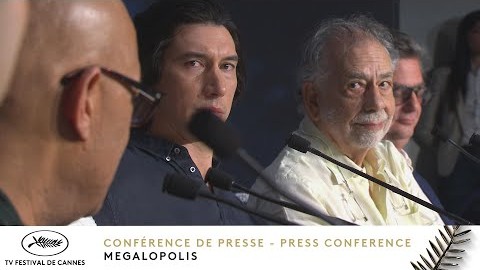 Conférence de presse de l'équipe du film "MEGALOPOLIS" par Francis Ford Coppola. Distribution : avec Adam Driver, Giancarlo Esposito, Nathalie Emmanuel, Aubrey Plaza, Shia LaBeouf, Jon Voight, Jason Schwartzman, Talia Shire, Grace Vanderwaal, Laurence Fishburne, Kathryn Hunter, Dustin Hoffman